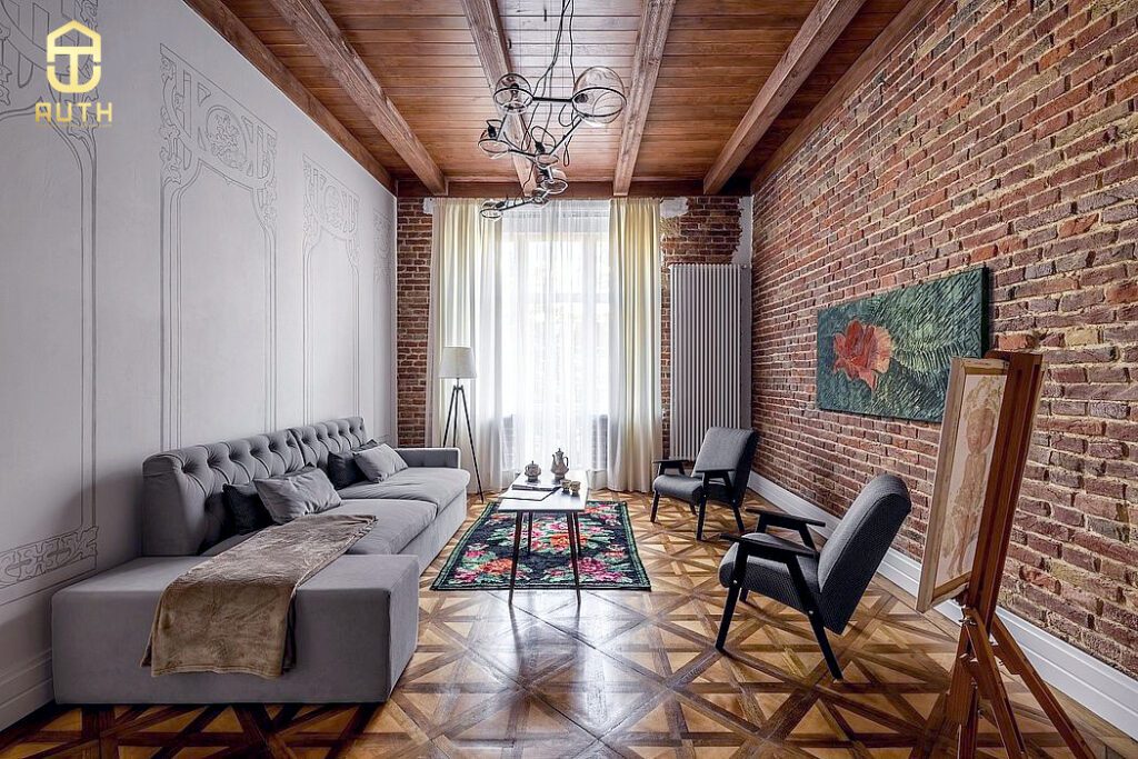 Chất liệu gỗ thô hoàn toàn tạo cảm giác khá ấm cúng, dễ chịu ngay từ cái nhìn đầu tiên. Áp dụng chất liệu kính