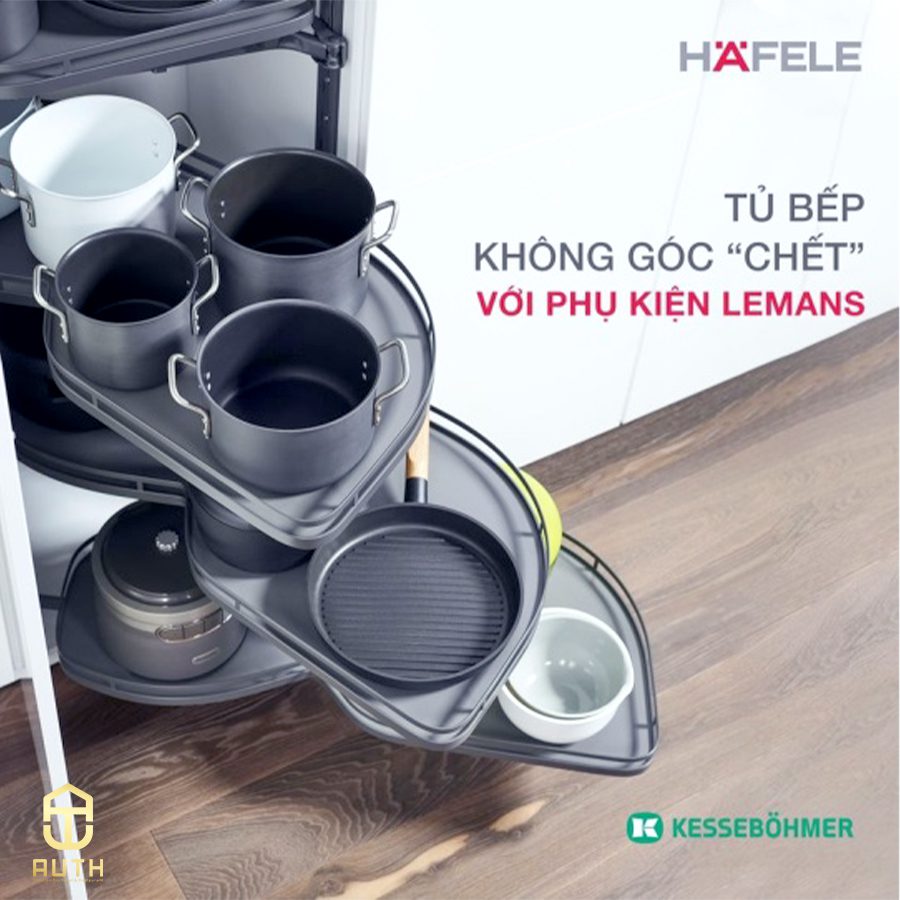Phụ kiện Hafele cho giả pháp lưu trữ bao gồm các dòng sản phẩm cho tủ bếp dưới như: Tủ kho, bộ rổ góc, giá dao thớt,