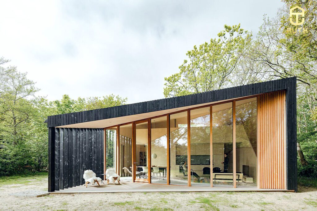 Chất liệu gỗ thô hoàn toàn tạo cảm giác khá ấm cúng, dễ chịu ngay từ cái nhìn đầu tiên. Áp dụng chất liệu kính