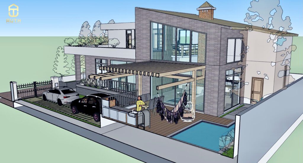 Mẫu BUNGALOW có gác lửng diện tích 40m2 này được Auth Corporation thiết kế dành cho gia đình anh Hùng với phong cách hiện đại