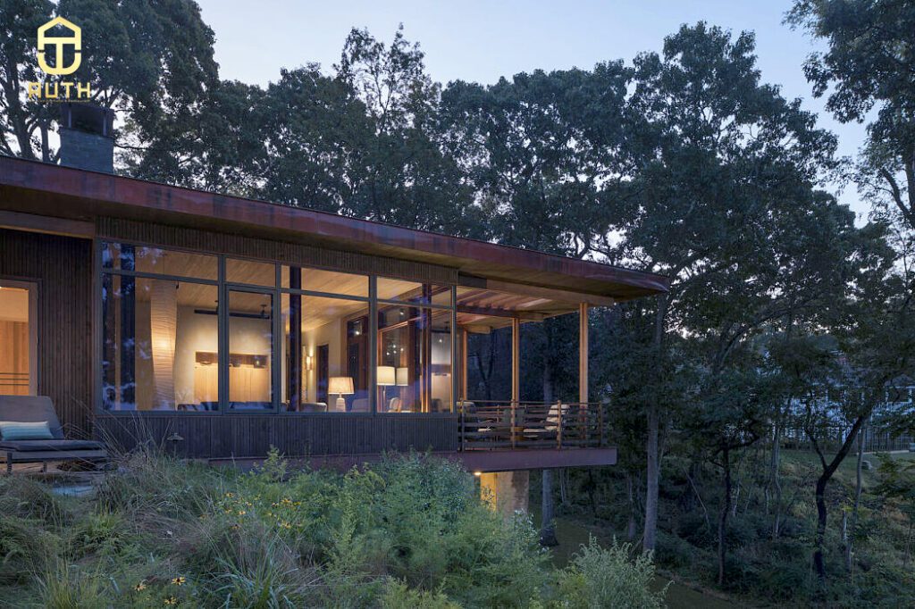 Ngoài ra, công trình này kiến trúc sư Auth Corporation còn có sự thiết kế hợp lí khi lùi về sau có khoảng sân trước, nhằm đảm bảo công trình xây dựng trên diện tích đất rộng lớn với bề ngoài tổng thể mà bất kỳ ai nhìn thấy cũng mê mẫn. Phần diện tích còn lại sẽ được sử dụng làm gara để xe, các lối đi trong khu vườn, hay bố trí các hồ thủy sinh, tiểu cảnh, hòn non bộ,… Do đó, có thể lí giải tại sao anh Minh lại tin tưởng và lựa chọn mẫu thiết kế này của Auth để xây dựng.