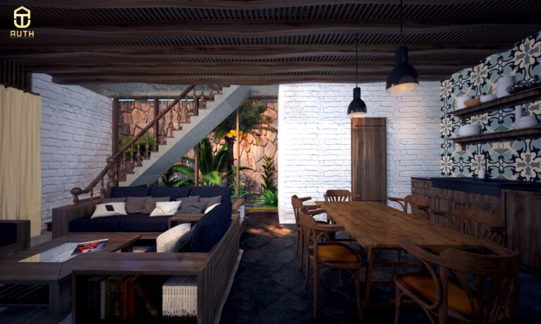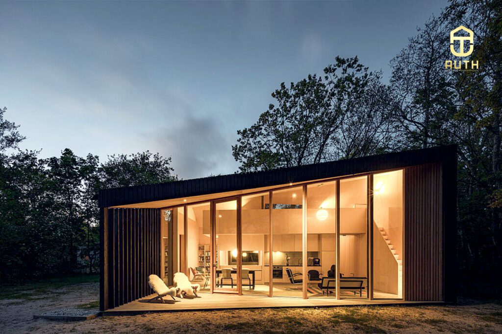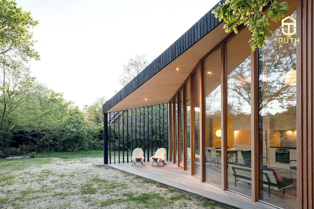 Với thiết kế nhà gỗ Bungalow mộc mạc này, kiến trúc sư nhà Auth tỉ mỉ hơn về nội thất bên trong đồng bộ hoàn hảo với mặt tiền bên ngoài.